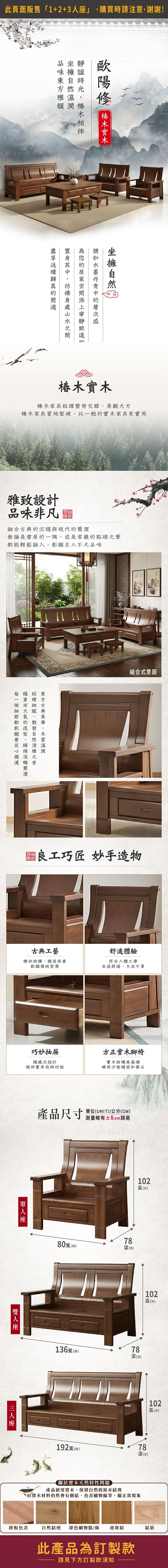 ASSARI-歐陽修全實木1+2+3人沙發