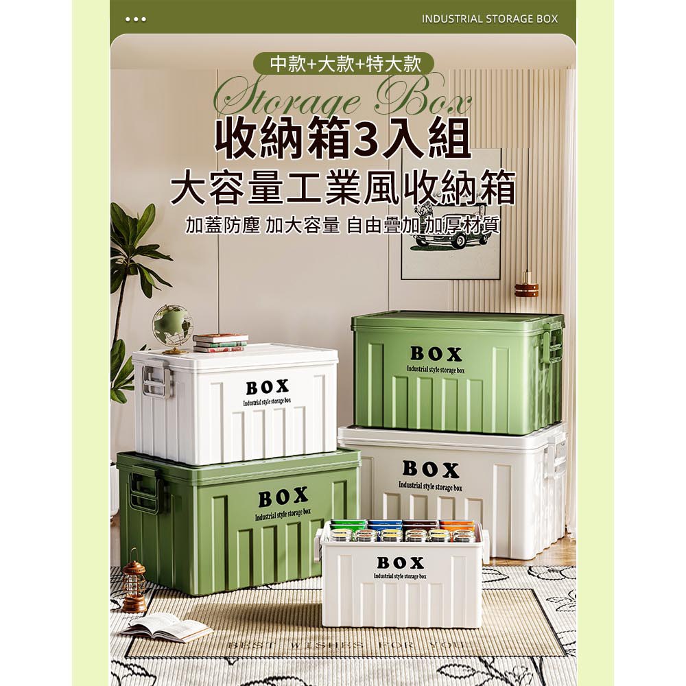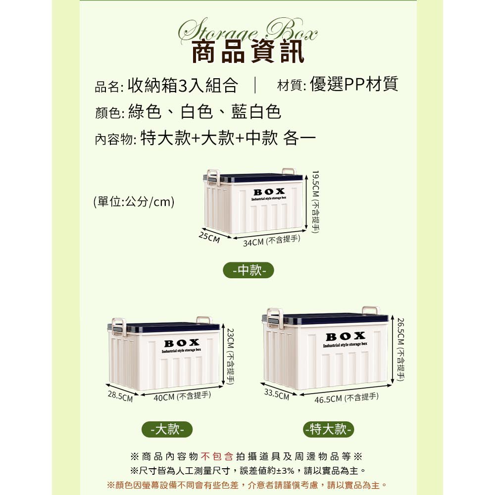 AOTTO 大容量工業風雙提手收納箱-3入(露營箱 置物箱 車載箱)白色