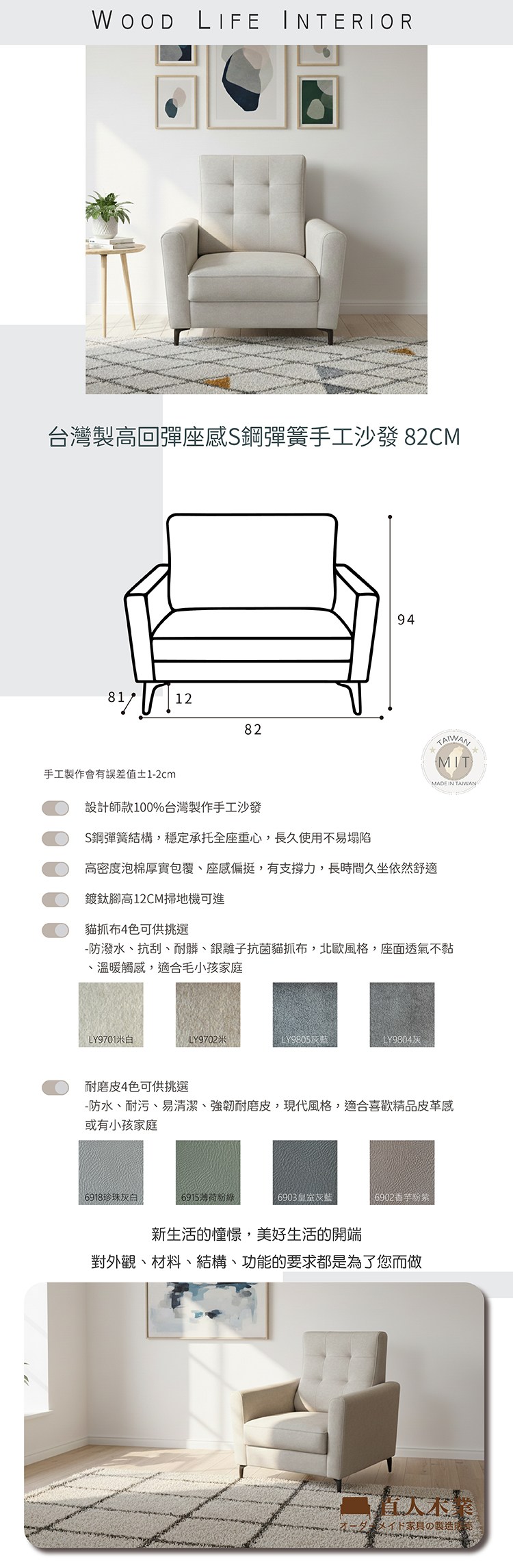 ASSARI-麥克飽滿回彈單人座貓抓皮沙發