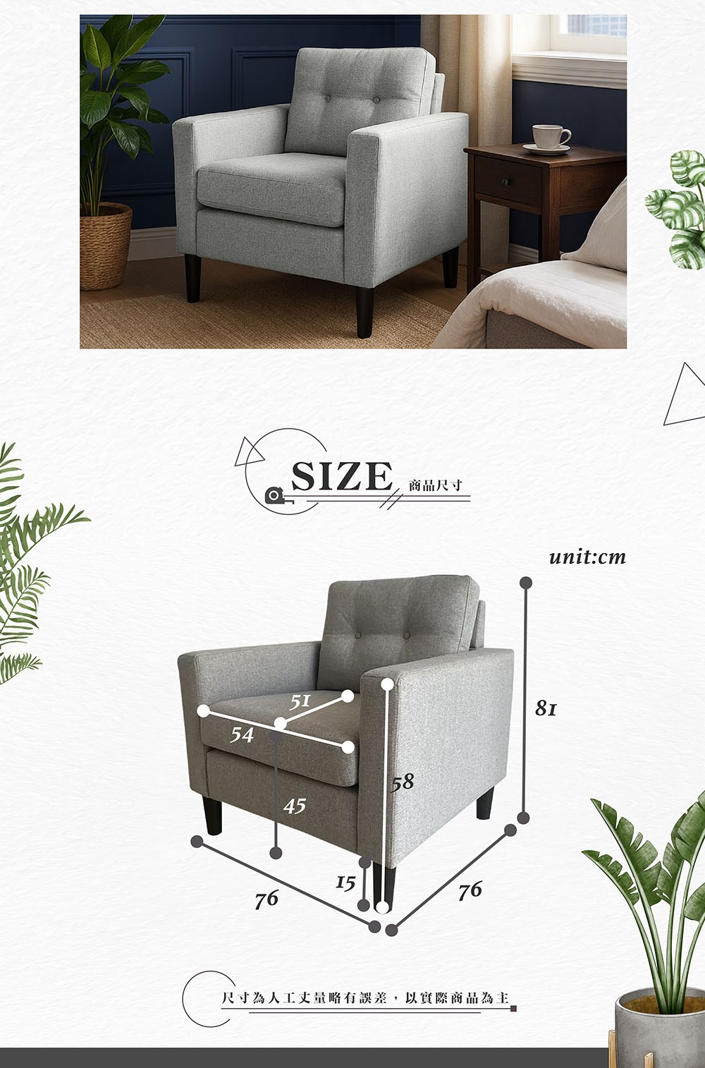 文創集 亞迪耐磨貓抓布單人座沙發椅-87x87x92cm免組