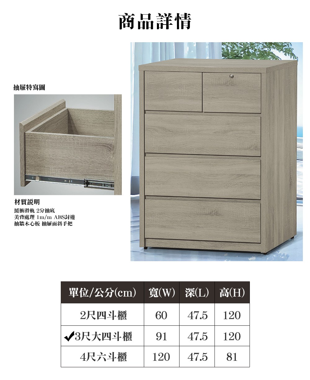 ※此賣場僅販售 夏野地灰梧桐色3尺大四斗櫃※