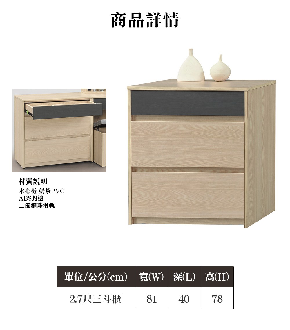 ※此賣場僅販售 克雷歐2.7尺三斗櫃※