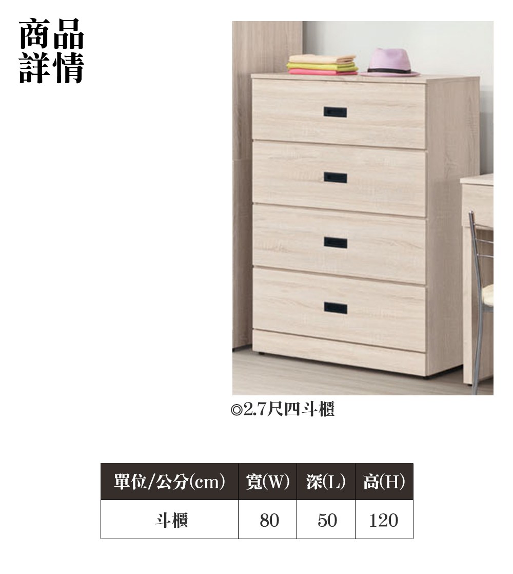 ※此賣場僅販售 里多卡2.7尺大四斗櫃(雪杉白)※