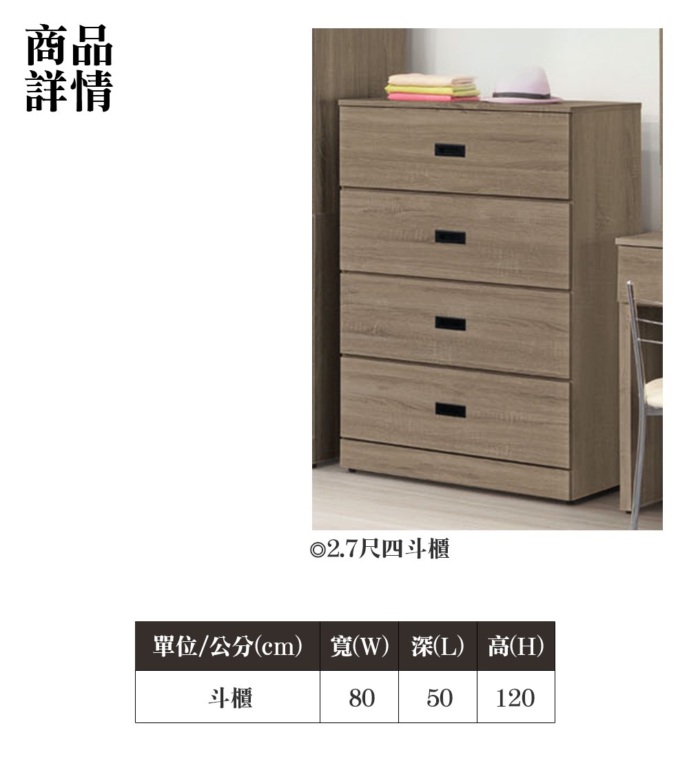 ※此賣場僅販售 里多卡2.7尺大四斗櫃(灰橡色)※