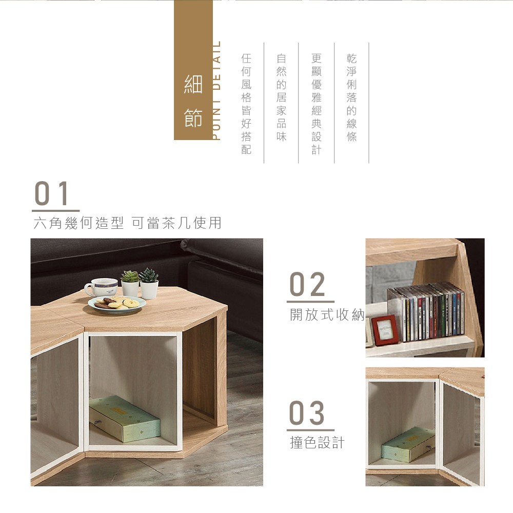 【H&D東稻家居】六角几/小茶几/邊几/床頭櫃(TJS1-05646)