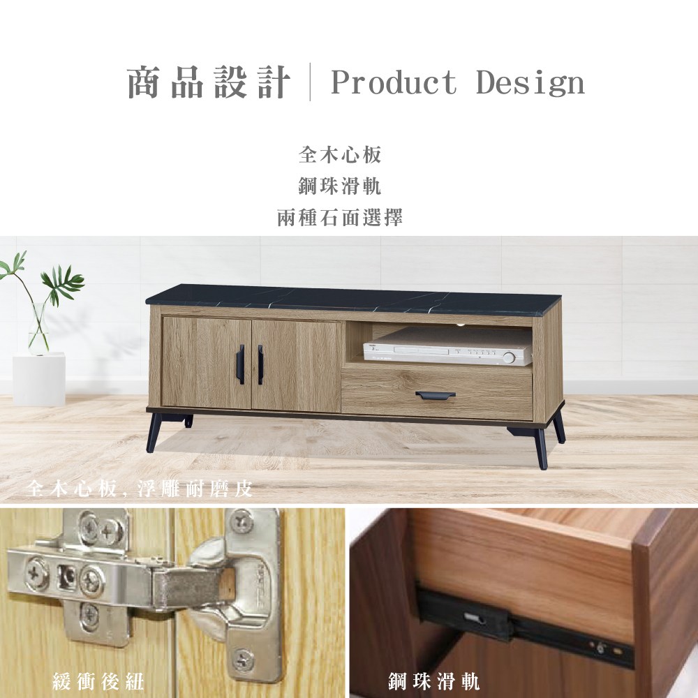 Boden-妮絲6尺二門二抽石面電視櫃/長櫃/視聽櫃-181x42x56cm