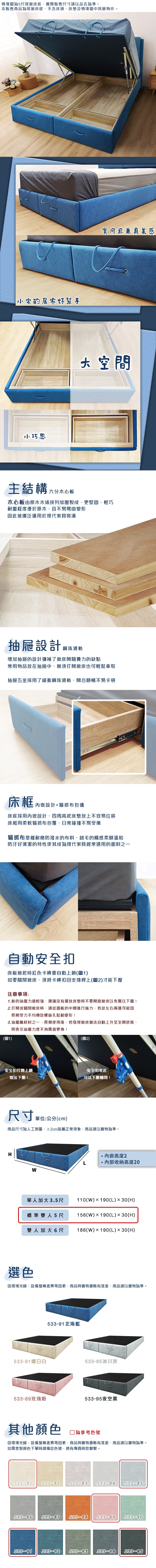點我下載【本木】亨利 貓抓布尾掀二抽床底-雙人5尺533-91北海藍