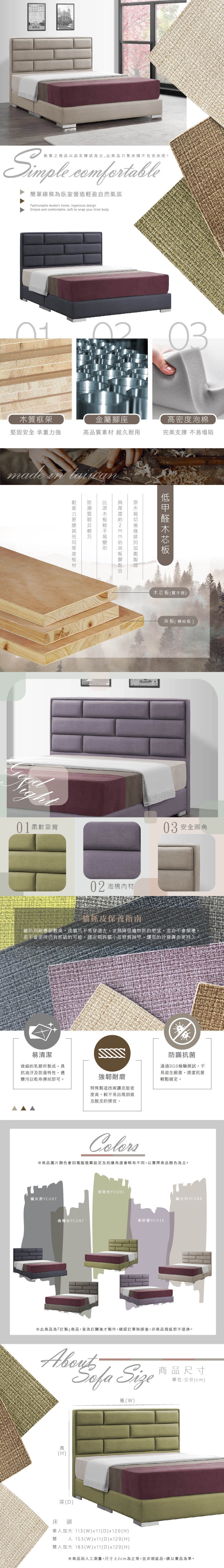 IHouse-艾琪藝 長方格貓抓皮(床頭+二抽底)房間2件組單大3.5杏仁黃+玫瑰灰