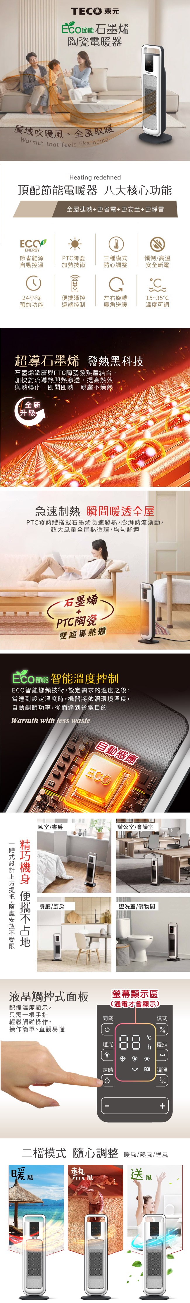 【TECO東元】ECO節能溫控石墨烯陶瓷電暖器
