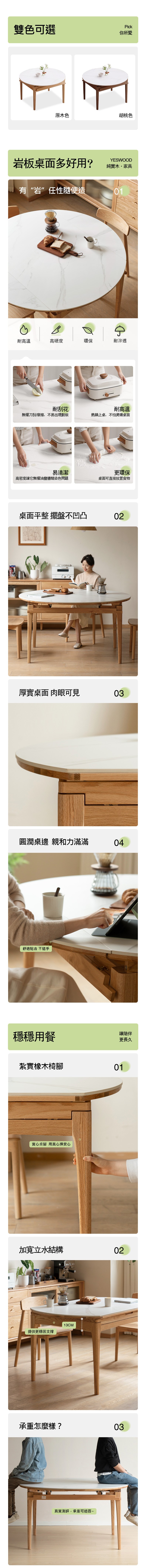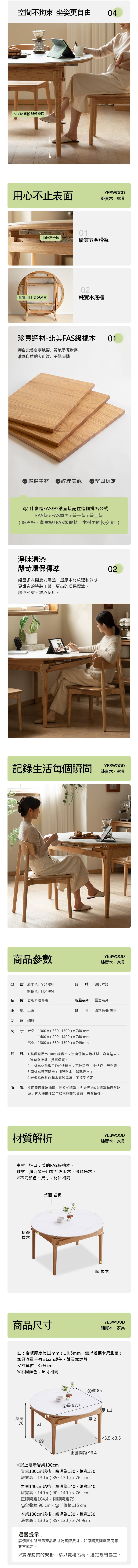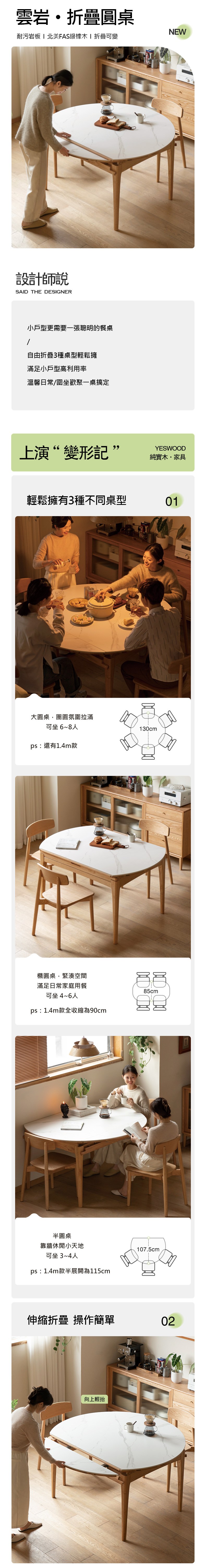*注意:以下為情境示意圖,實際商品款式為雲岩橡木實木胡桃色岩板摺疊圓型餐桌1.3M H54R04