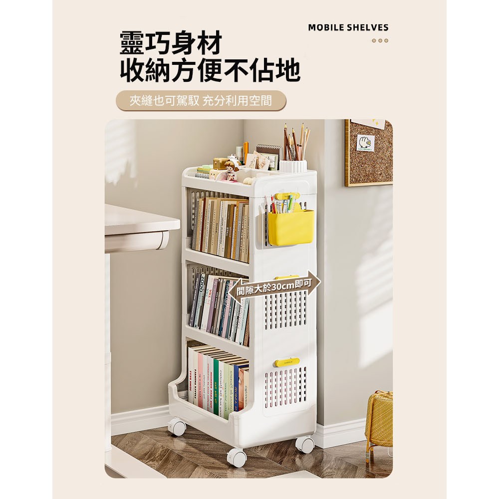 【PICKup】18面寬吉納四層隙縫置物架附輪(2低+1高+1掛籃&掛鉤)