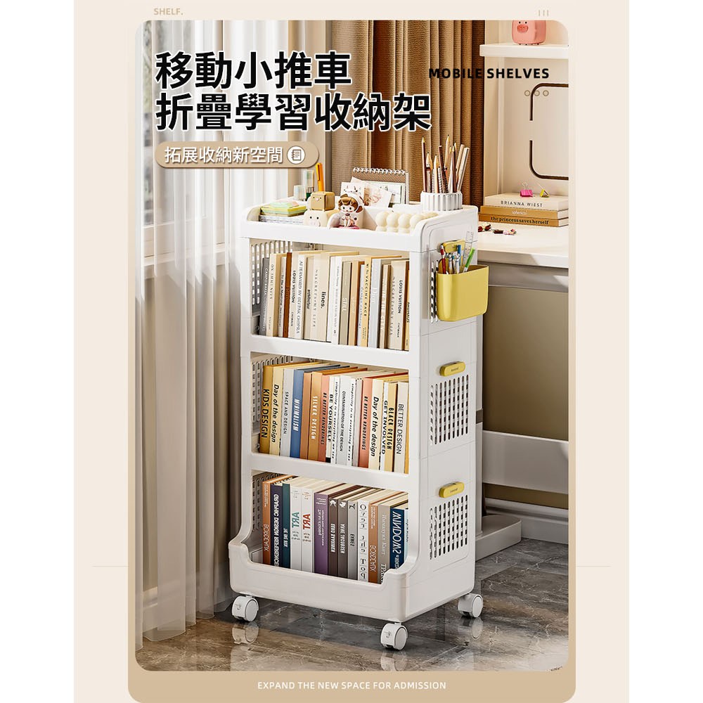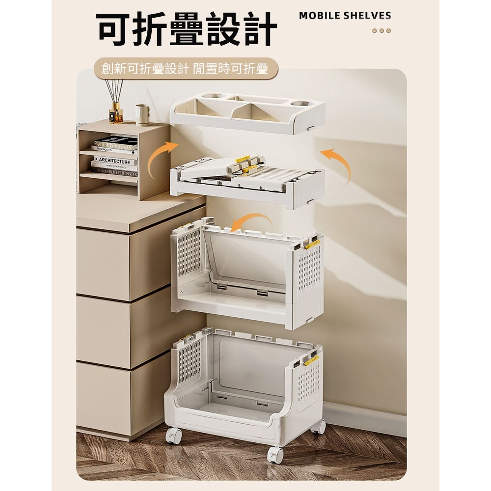 SHCJ 生活采家 移動式折疊推車收納架 四層 附滑輪 簡灰色
