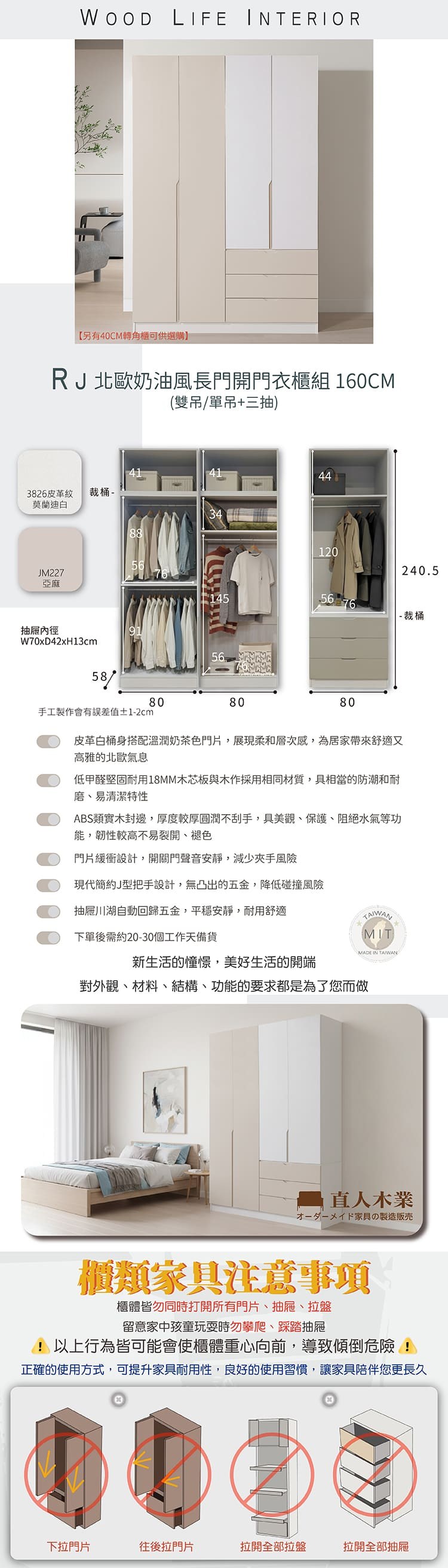 點我下載直人木業-RJ北歐奶油風長門開門衣櫃組160公分(單吊/雙吊+三抽)單吊款+三抽