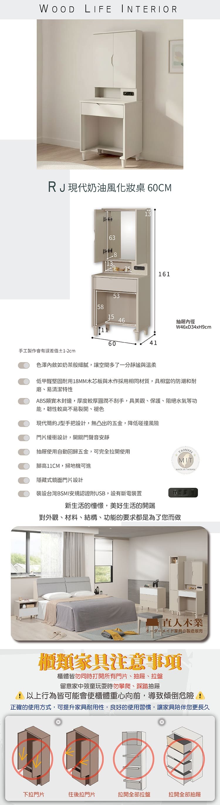 直人木業-UL莫蘭迪奶油風床頭櫃49公分