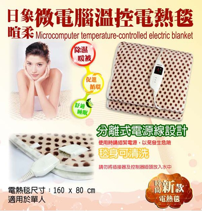 【日象】暄柔微電腦溫控電熱毯(單人) ZOG-2120C