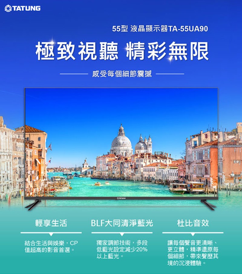 【TATUNG 大同】55型液晶顯示器/無視訊盒TA-55UA90~送基本安裝