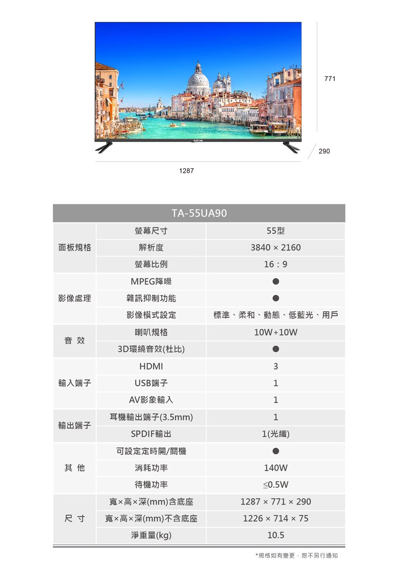 TATUNG大同 50吋4K顯示器TA-55UA90 含標準安裝