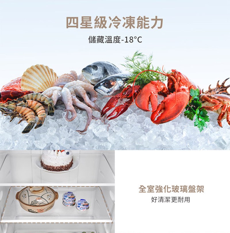 聲寶SR-C35GD變頻雙門玻璃冰箱350L(下冷凍)