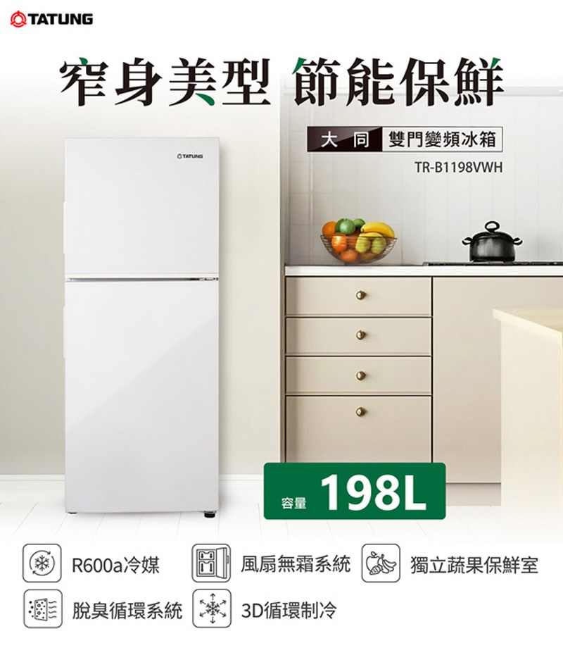 TATUNG大同326公升一級能效變頻雙門電冰箱 TR-BD1326VWH~含拆箱定位+舊機回收