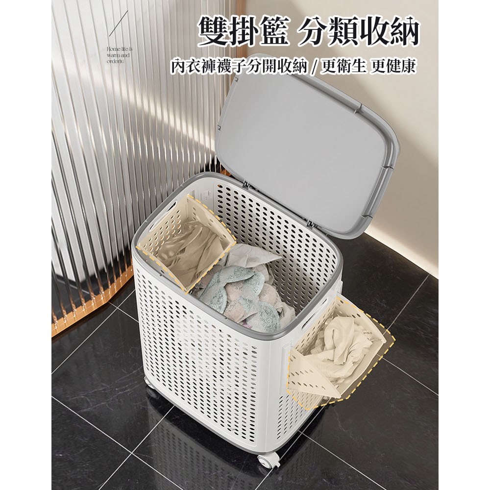 【Mr.box】掛勾款2層分類髒衣籃洗衣收納籃-附輪