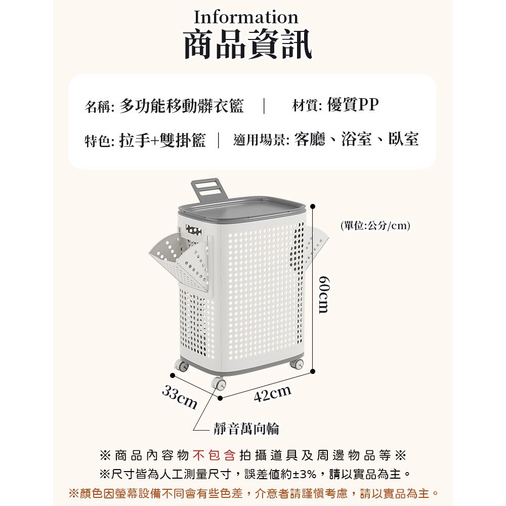 【AYAKO生活良居】多功能洗衣籃/置物籃(附滑輪&掛籃)