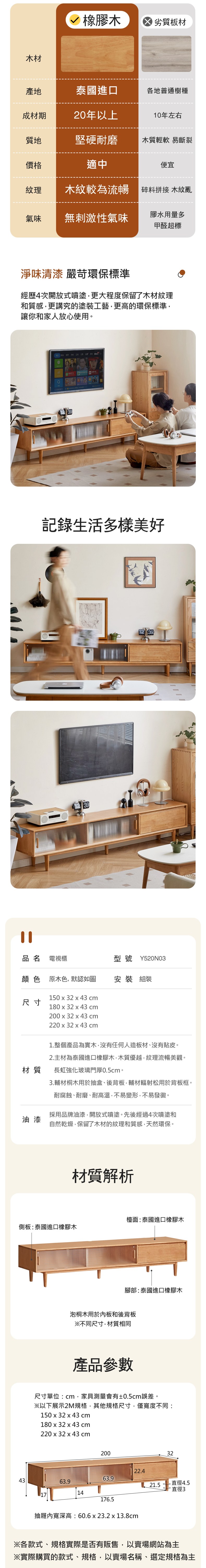 *注意:以下為情境示意圖,實際商品款式為原木日式喜木橡膠木實木原木色滑門電視櫃2M Y520N03