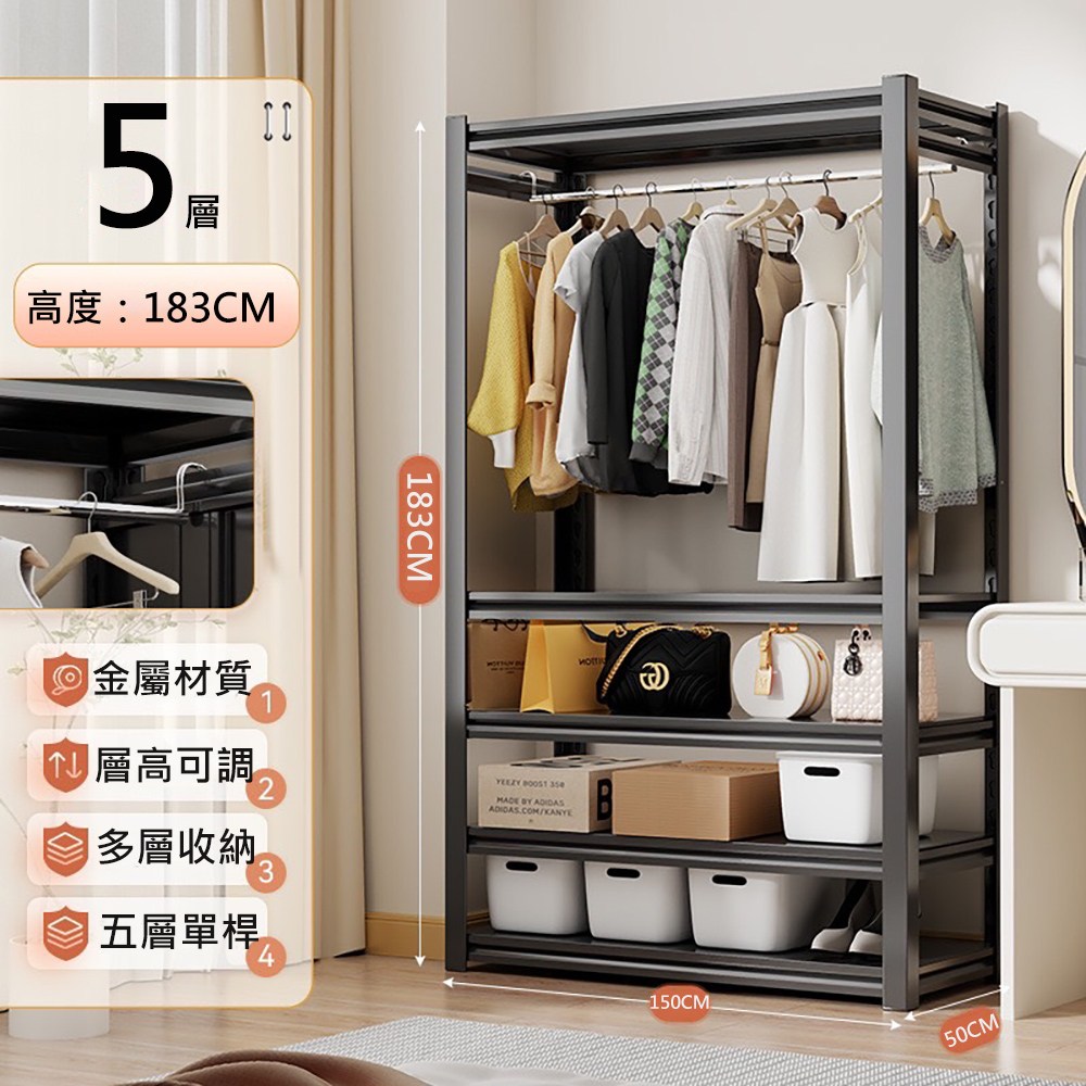 【居家生活Easy Buy】五層單桿角鋼吊掛衣架-50X150X183CM50X150X183掛衣架-白天使