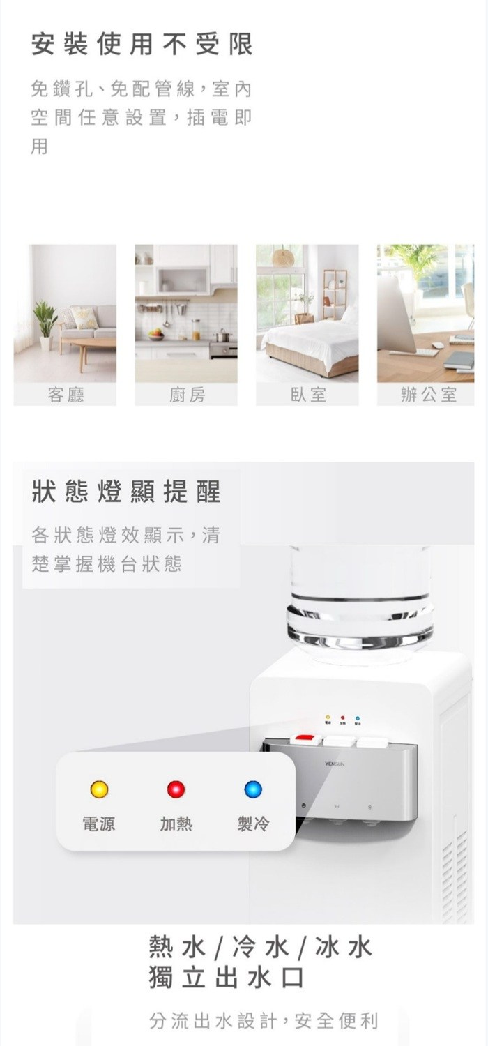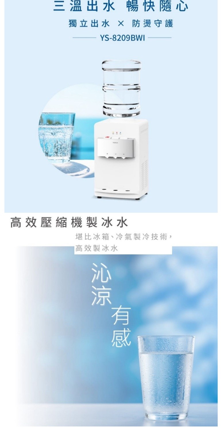 元山桌上型冰溫熱桶裝飲水機 YS-8209BWI