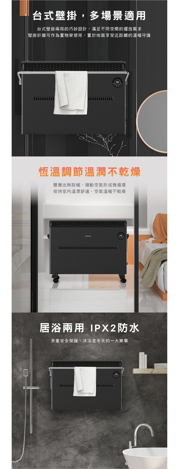 【PHILIPS 飛利浦】居浴兩用 石墨烯對流取暖機/電暖器-可遙控(AHR3144CS)