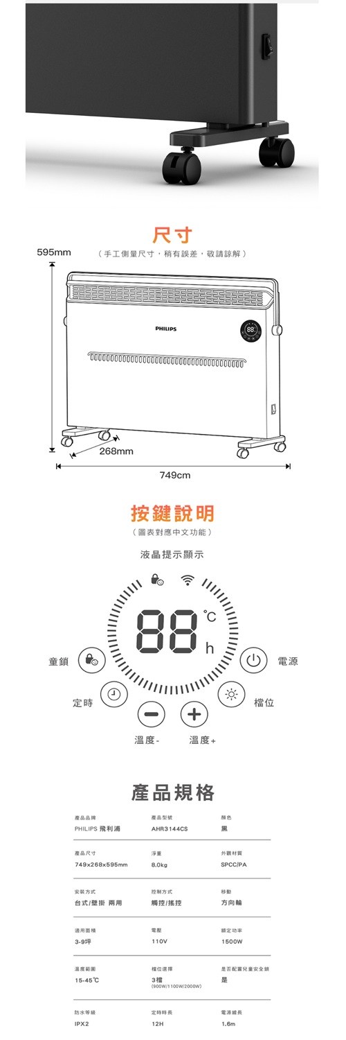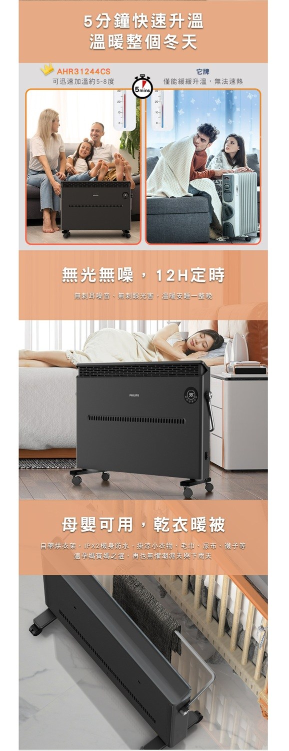 Philips 飛利浦 石墨烯對流取暖機/電暖器 AHR3144CS-可遙控
