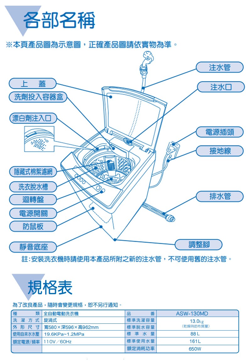 SANLUX台灣三洋13公斤洗衣機ASW-130MD(含標準安裝)