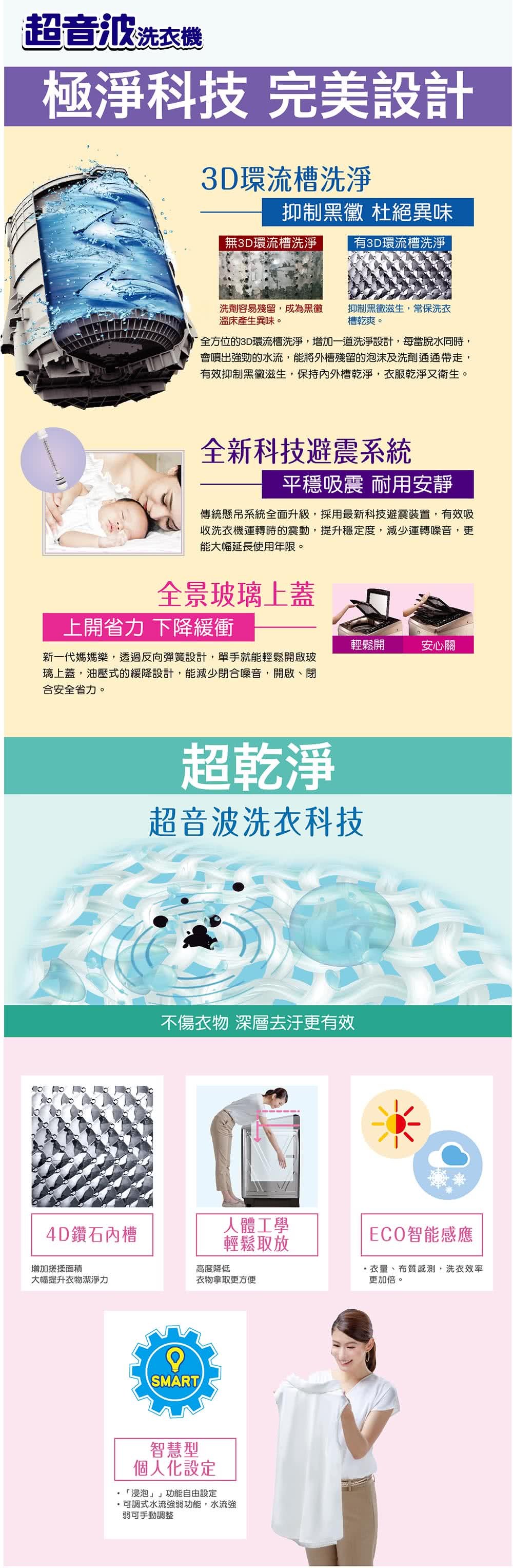 SANLUX台灣三洋 17kg DD直流變頻 超音波 直立式洗衣機 /台 SW-17DV10