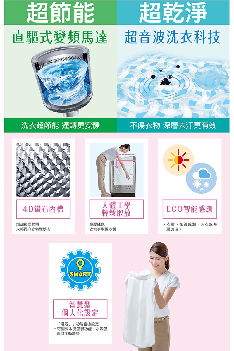 SANLUX台灣三洋 19kg DD直流變頻 超音波 直立式洗衣機 /台 SW-19DV10