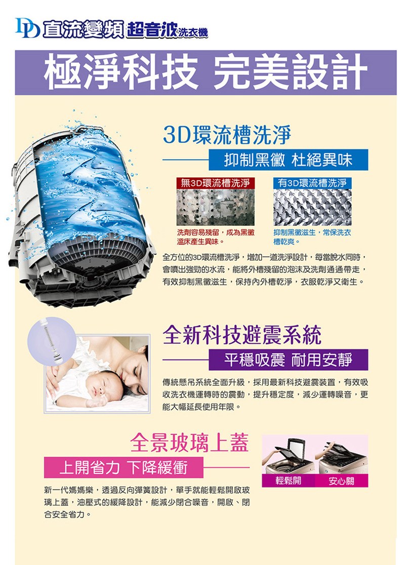 台灣三洋 15公斤超音波觸控式變頻直立式洗衣機SW-V15A~含基本安裝