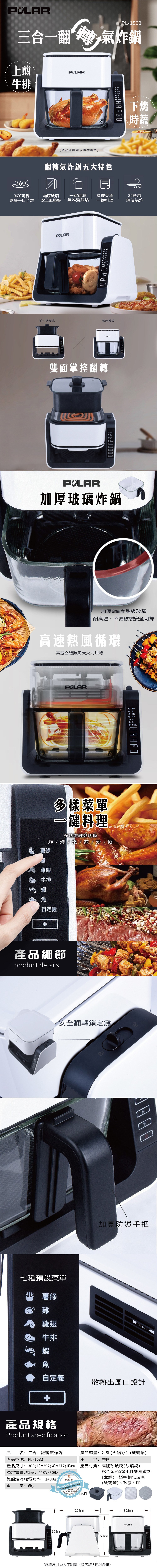 【POLAR普樂】三合一多功能翻轉氣炸鍋 PL-1533