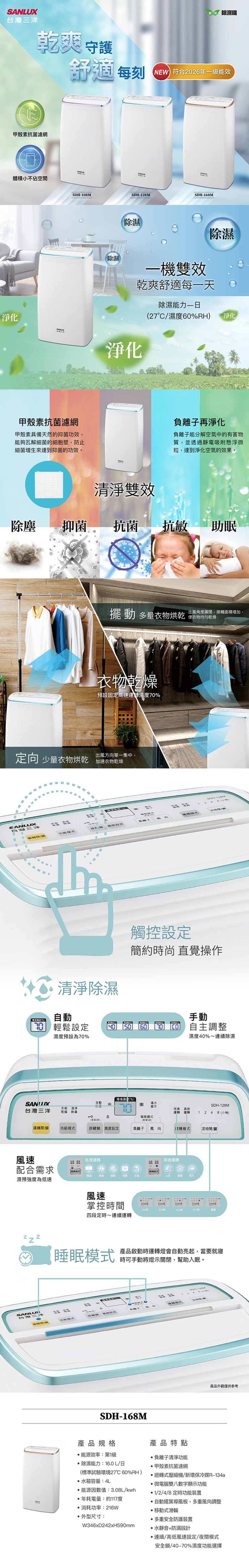 SANLUX台灣三洋 16公升/日 一級能效 除濕機 /台 SDH-168M