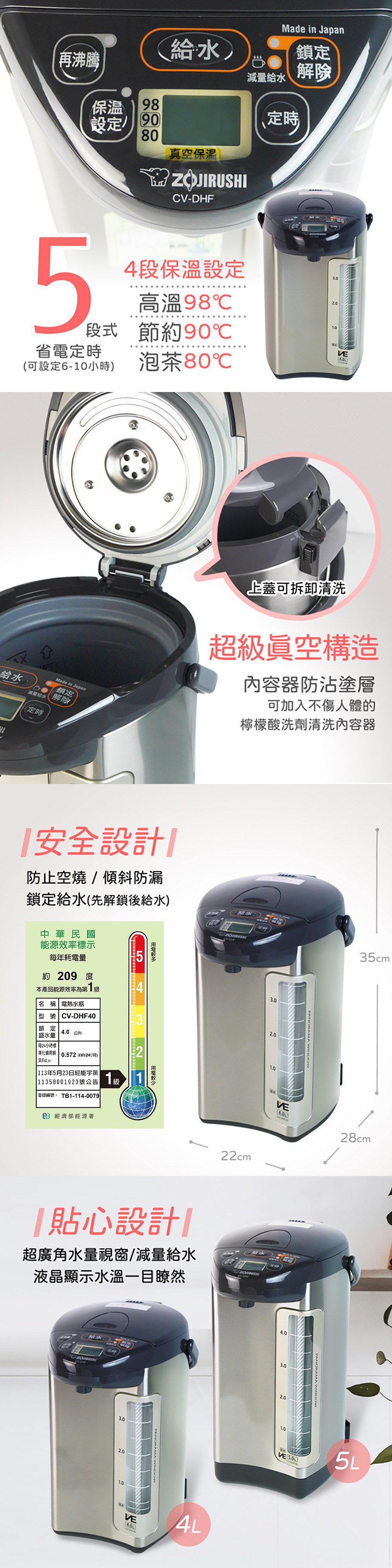 【象印】日本原裝4.0L超級VE真空保溫電熱水瓶 CV-DHF40
