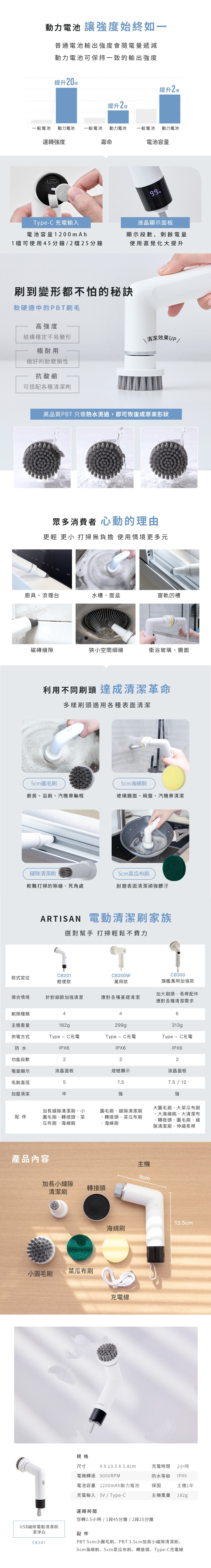 ARTISAN USB縫隙電動清潔刷 潔淨白 CB201 原廠出貨