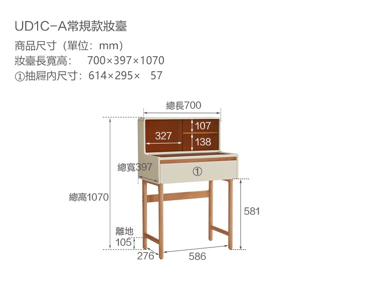 林氏木業好宅系列實木1M化妝桌組 LH112 (附妝凳 LH112) (H014375233)