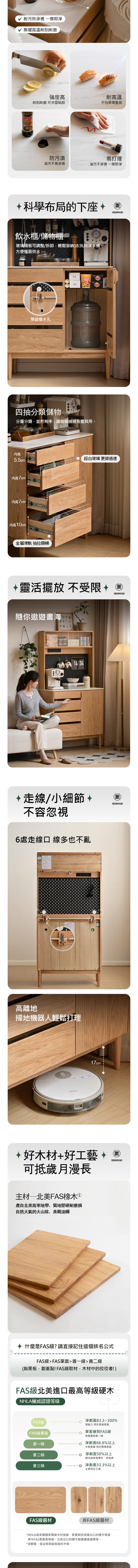 *注意:以下為情境示意圖,實際商品款式為光岩橡木實木洞洞板岩板餐櫃0.85M(有燈帶) Y150Q05 原木色