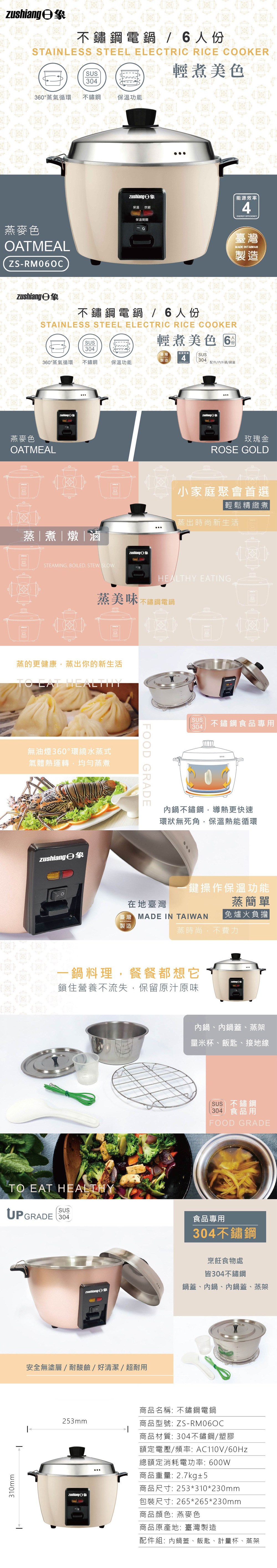 【日象】6人份不鏽鋼電鍋ZS-RM06OC(燕麥色)_廠商直送