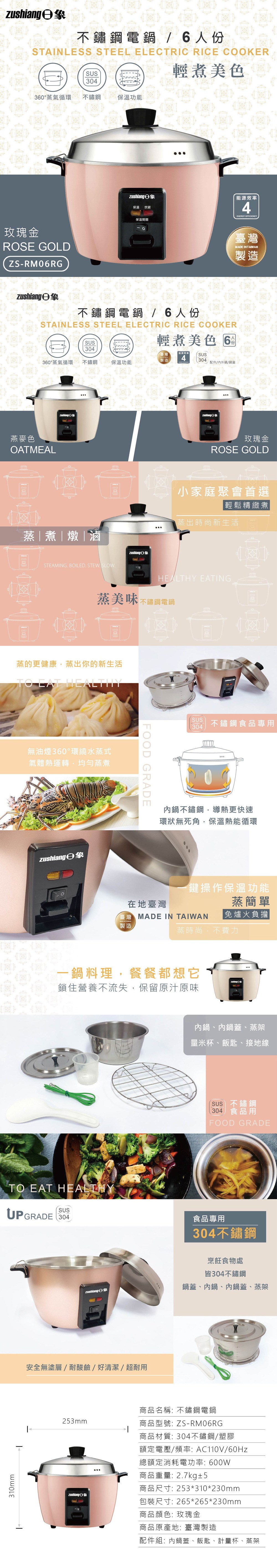 【日象】6人份不鏽鋼電鍋(玫瑰金) ZS-RM06RG