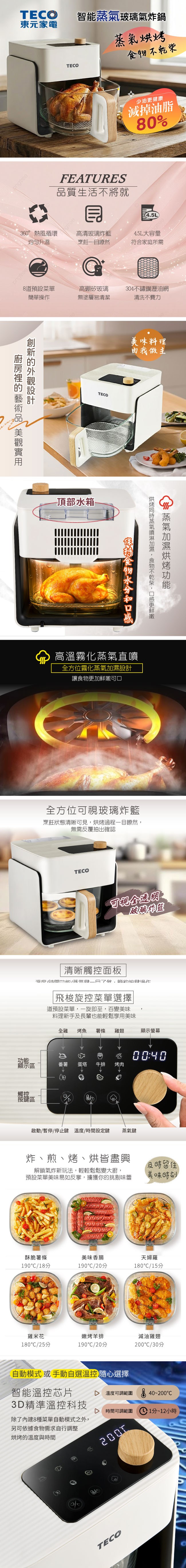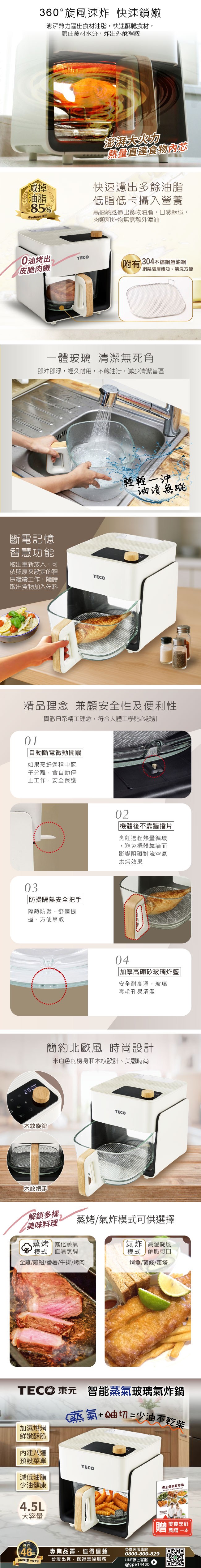 【TECO東元】智能蒸氣玻璃氣炸鍋