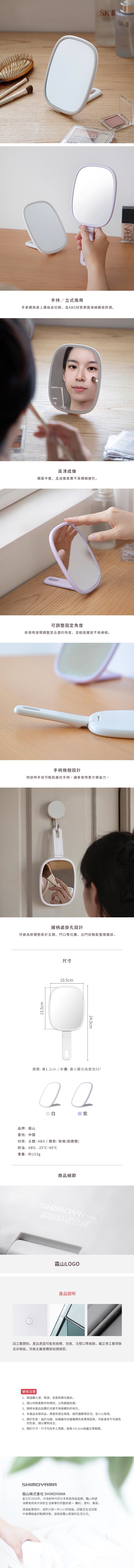 【日本霜山】手持可立兩用式化妝鏡/補妝鏡/手拿鏡/桌上鏡-多色可選-白