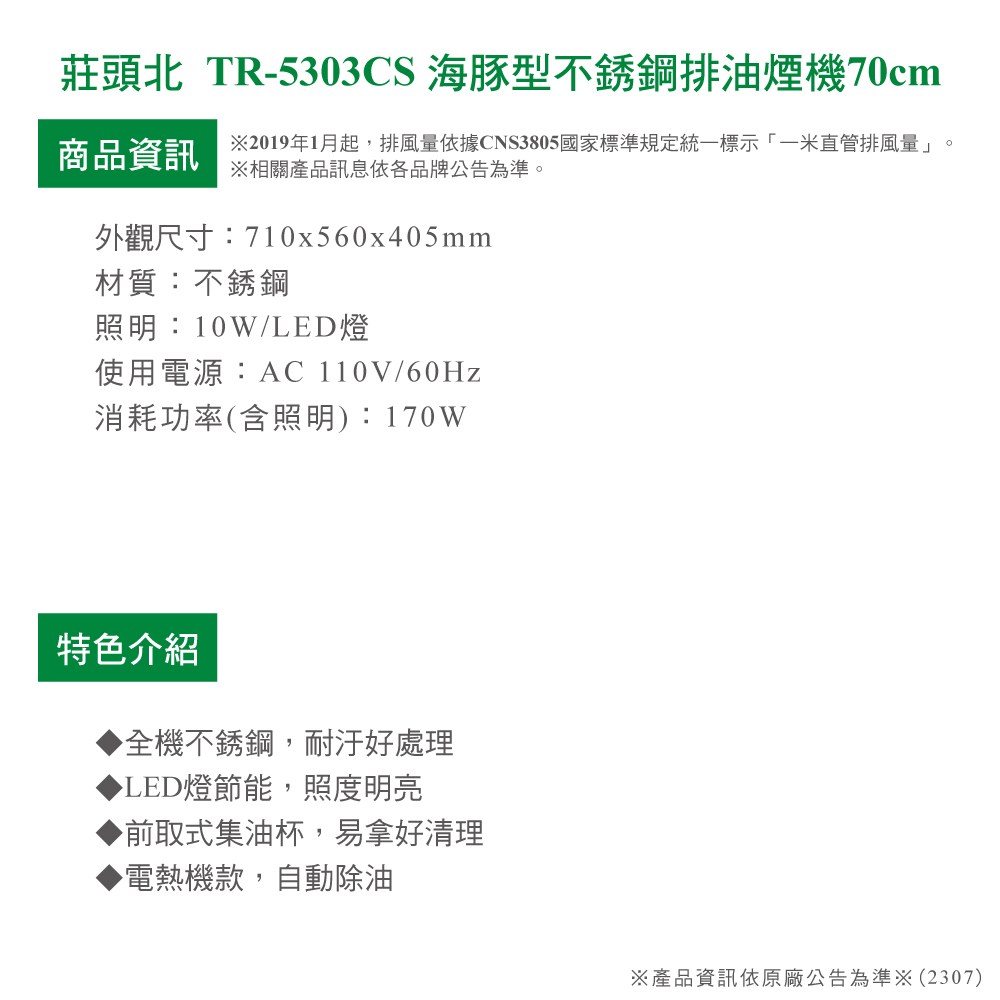 〈原廠安裝〉莊頭北單層式不鏽鋼排油煙機 80公分 TR-5195