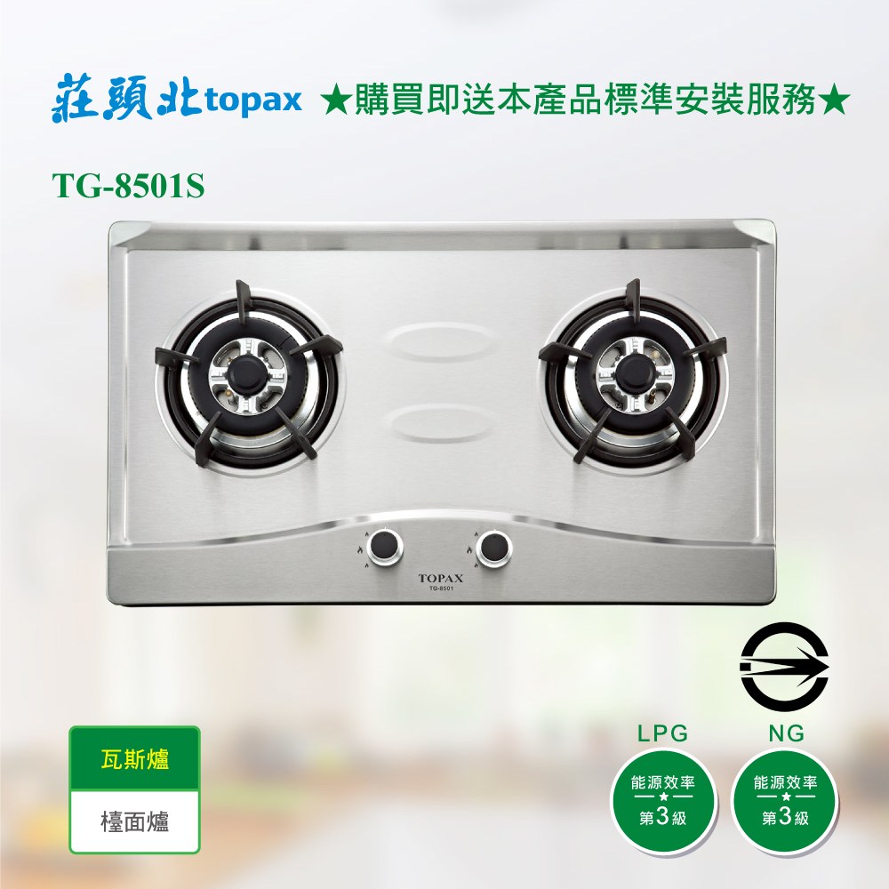 [莊頭北] TG-8503S 雙口保潔不銹鋼檯面爐_天然NG天然氣
