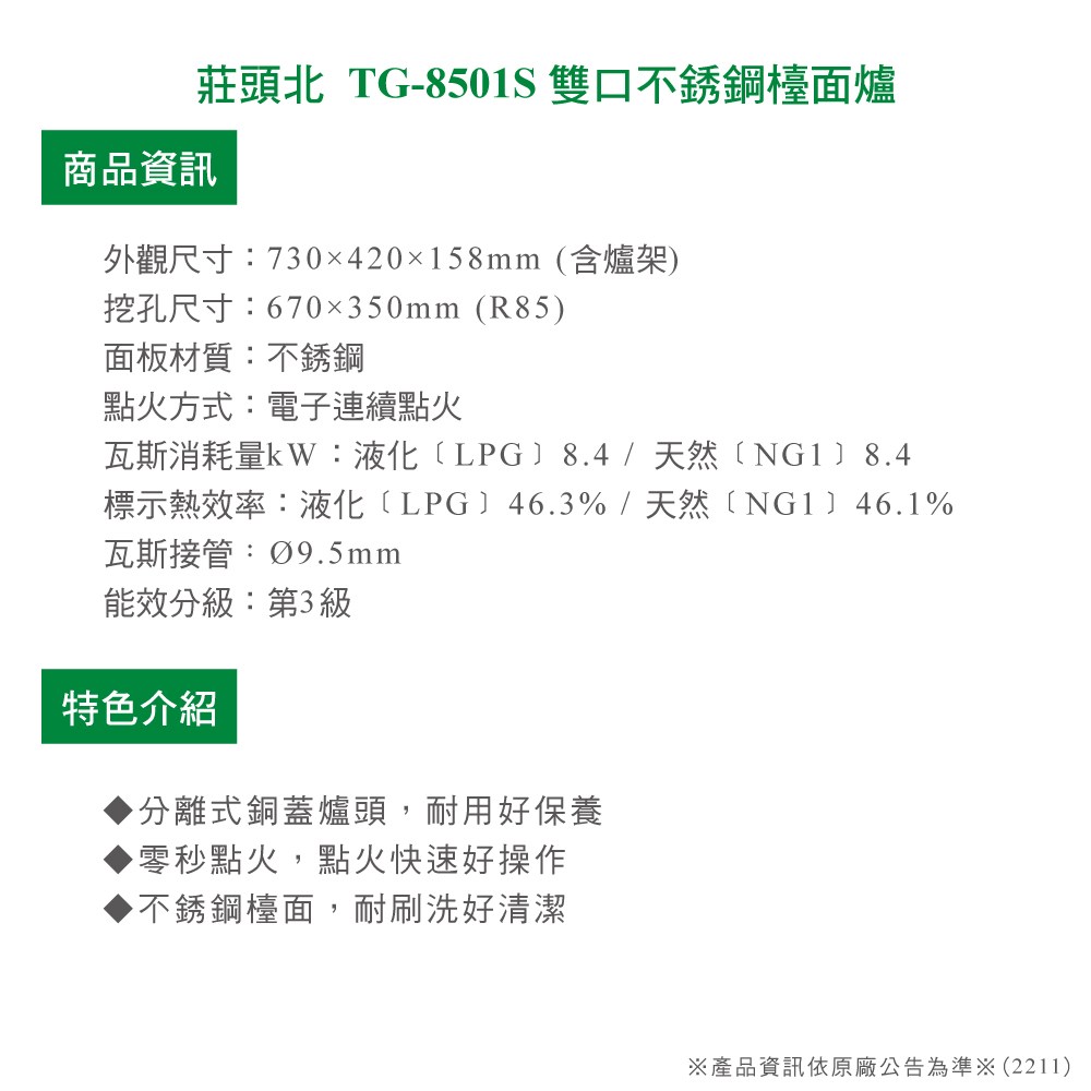※產品資訊依原廠公告為準※(2211C)