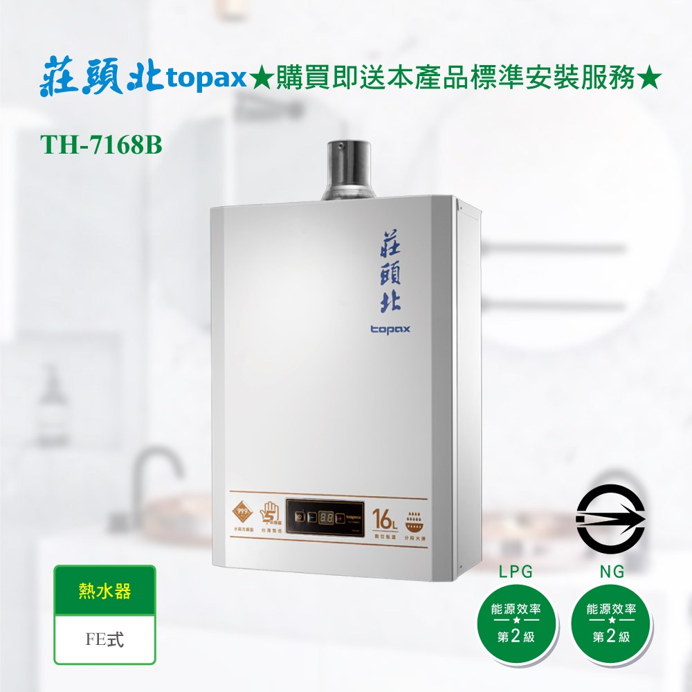 (全省安裝)莊頭北16公升數位適恆溫分段火排DC強制排氣FE式熱水器桶裝瓦斯TH-7168BFE-LPG