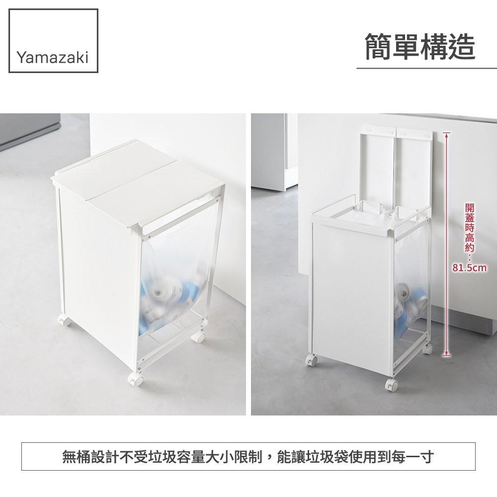 簡單構造無桶設計不受垃圾容量大小限制,能讓垃圾袋使用到每一寸。