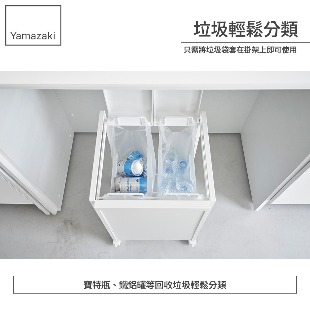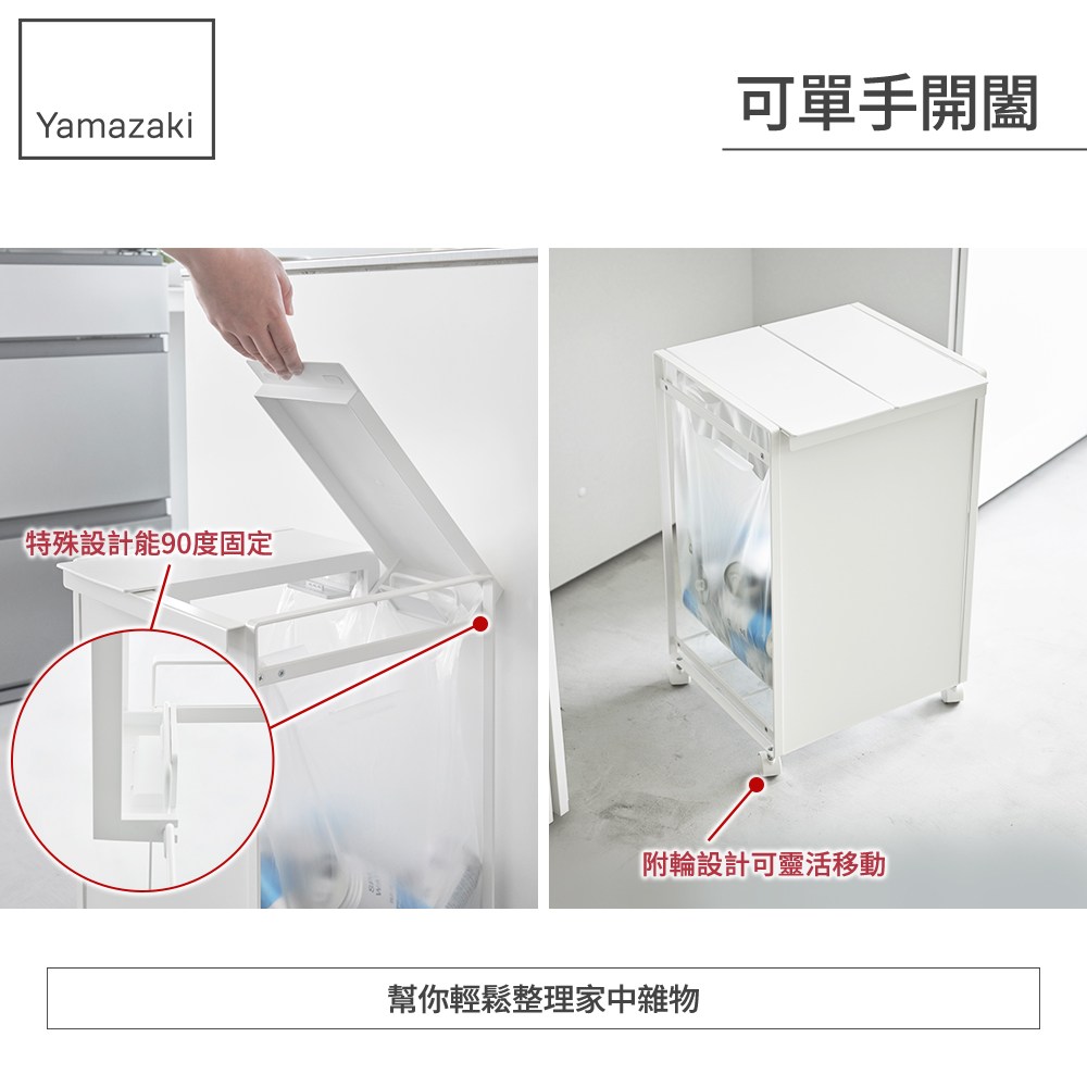 只需將垃圾袋套在掛架上即可使用,寶特瓶、鐵鋁罐等回收垃圾輕鬆分類。